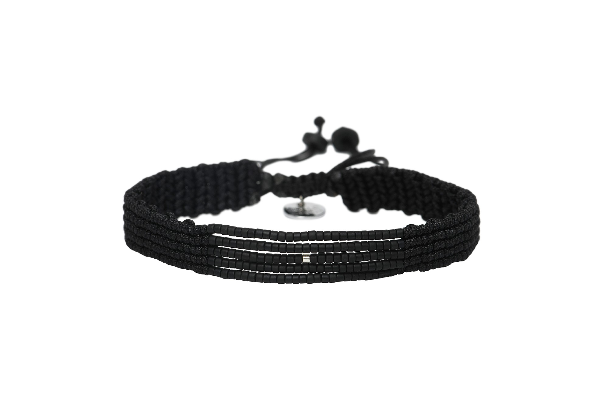 Composition : Perles de Miyuki noires, argentées et macramé noir.