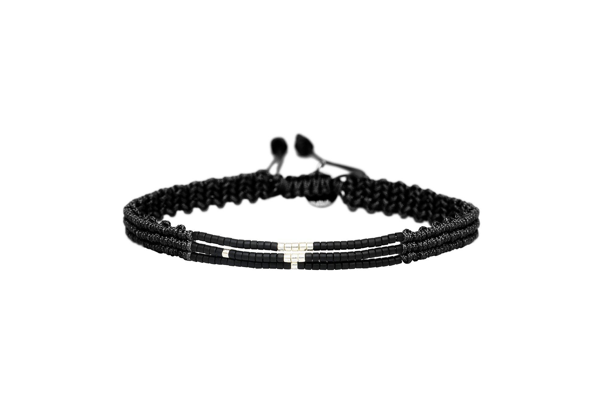 Composition : Perles de Miyuki noires, argentées et macramé noir.