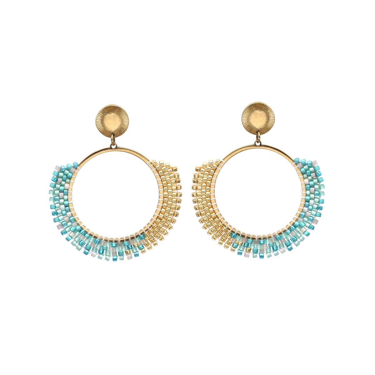 Les boucles d'oreilles Tal blue Maldives sont composées de perles de miyuki du japon et de laiton doré inoxydable.