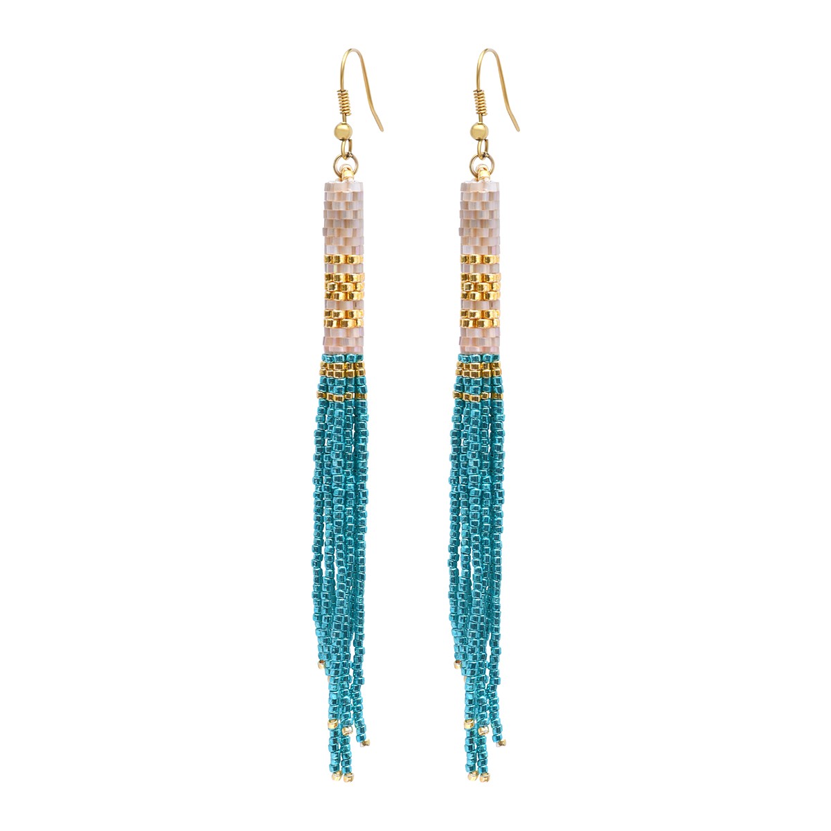 Les boucles d'oreilles Bahia blue Maldives sont composées de perles de miyuki du japon et de laiton doré inoxydable.