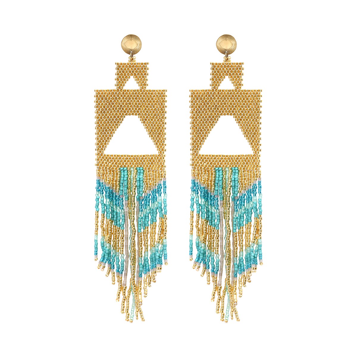 Les boucles d'oreilles Serena blue Maldives sont composées de perles de miyuki du japon et de laiton doré inoxydable.