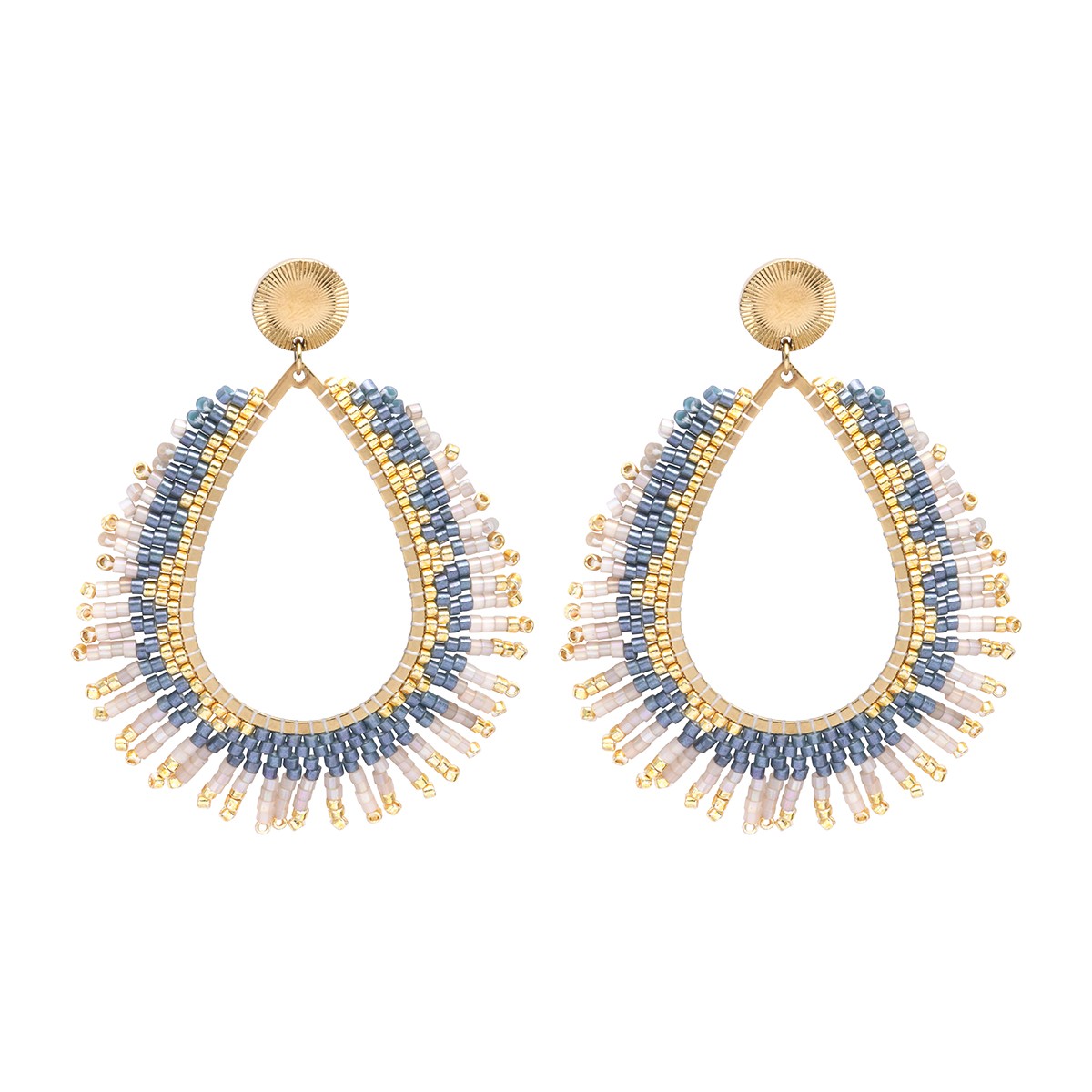 Les boucles d'oreilles Maya jungle Bali sont composées de perles de miyuki du japon et de laiton doré inoxydable.