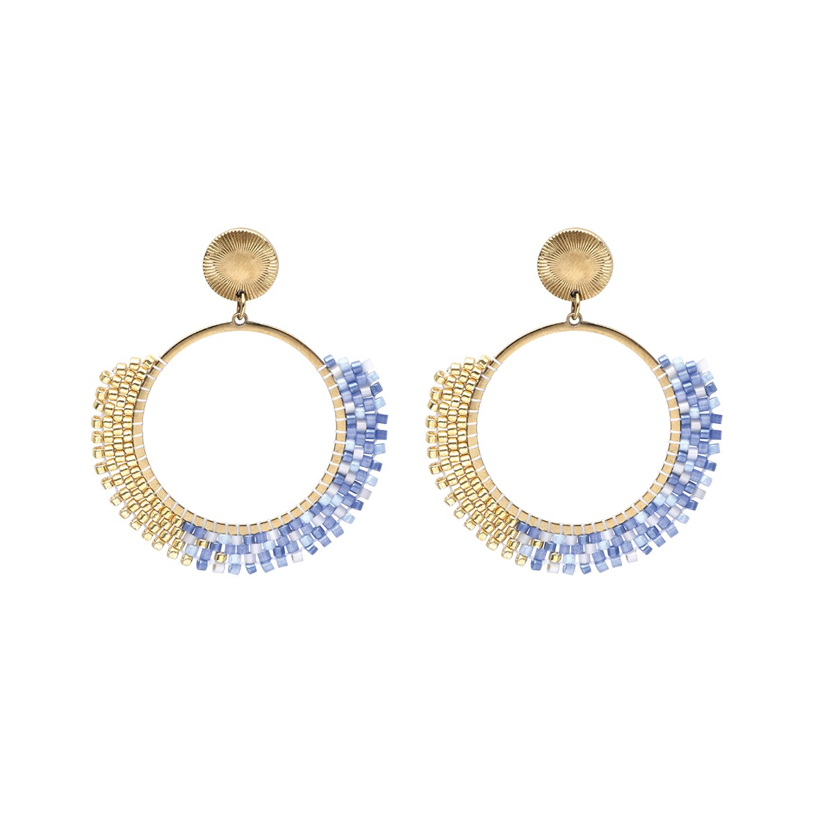 Les boucles d'oreilles Tal Santorini sont composées de perles de miyuki du japon et de laiton doré inoxydable.