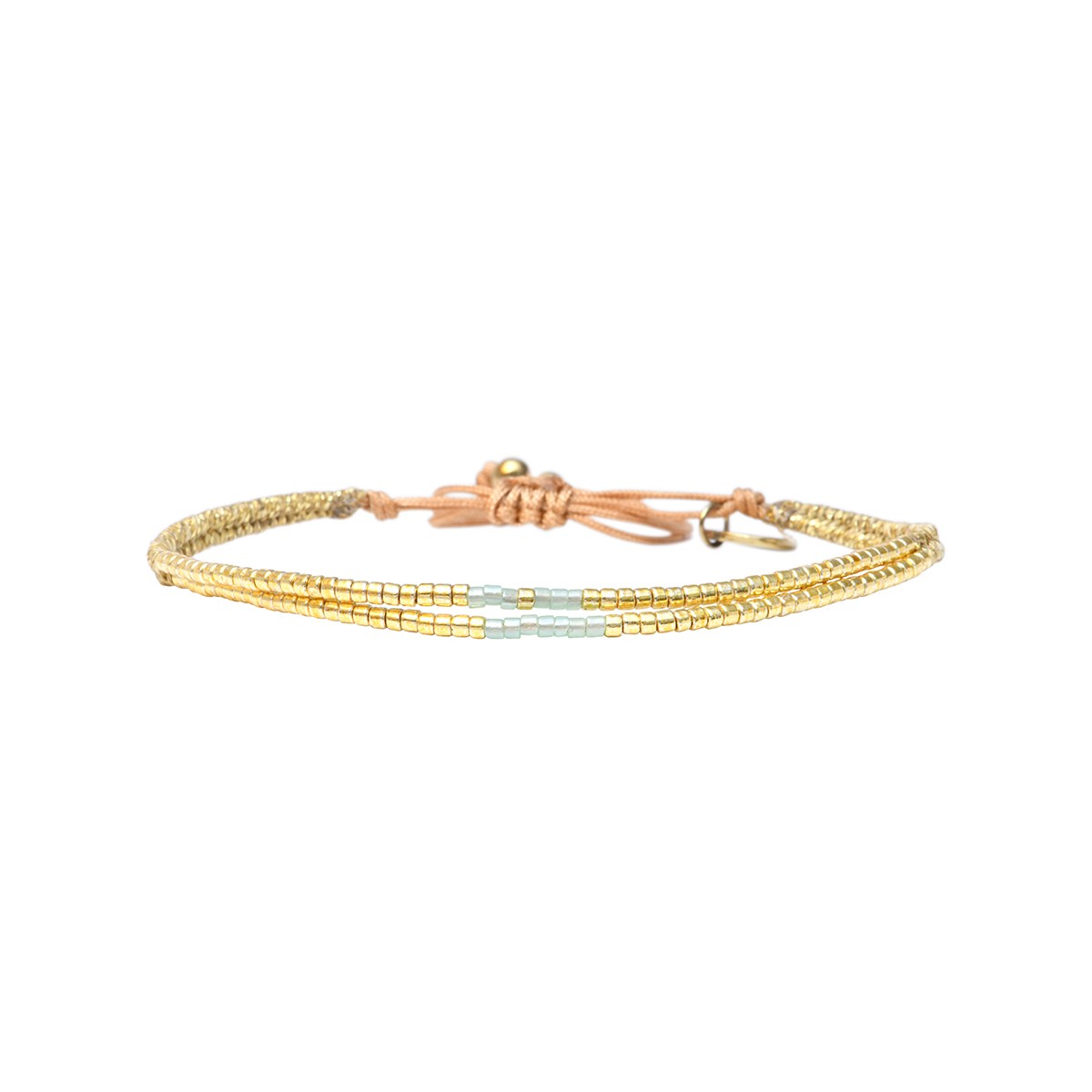 Composition : perles de miyuki dorées - cristal de roche - vert flâner au jardin