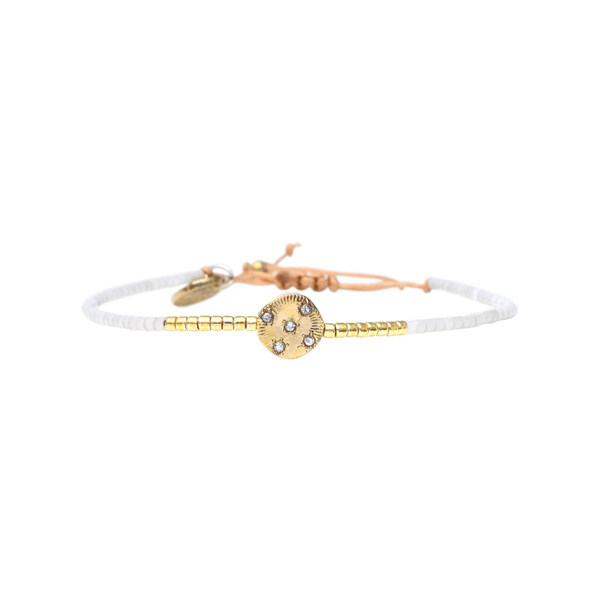 Composition : perles de miyuki dorées - blanc soie de pêche