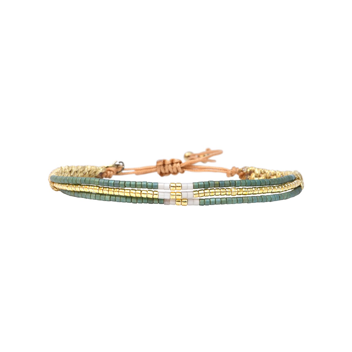 Composition : perles de miyuki dorées - émeraude lustré