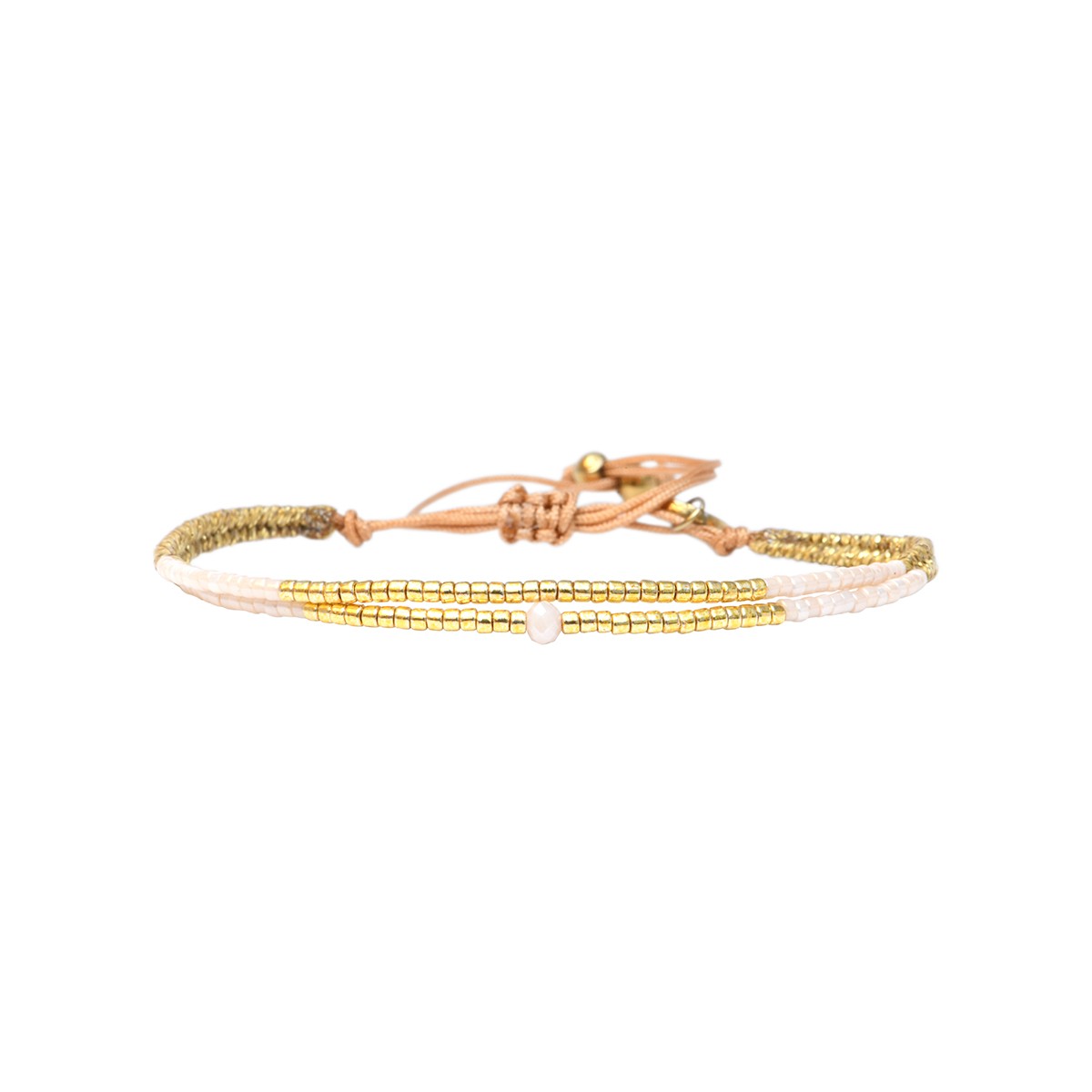 Composition : perles de miyuki dorées - blanc de sable - cristal de blanc de sable