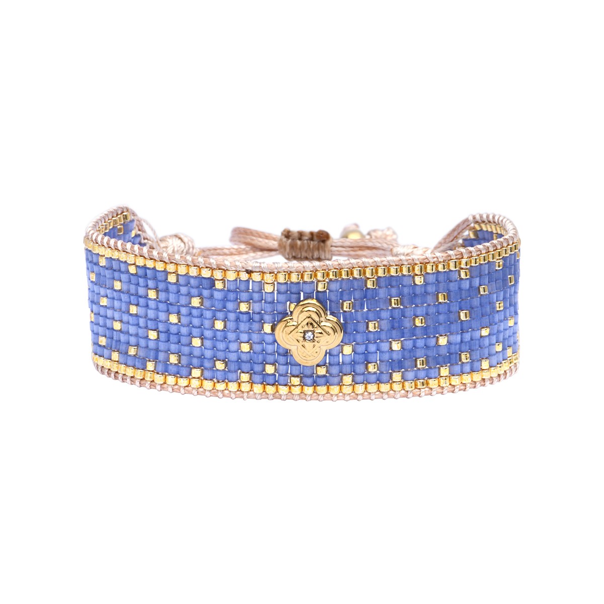 Le bracelet Mayssane Santorini bleu Porquerolles est composé de perles de miyuki du japon et de charms inoxydables.