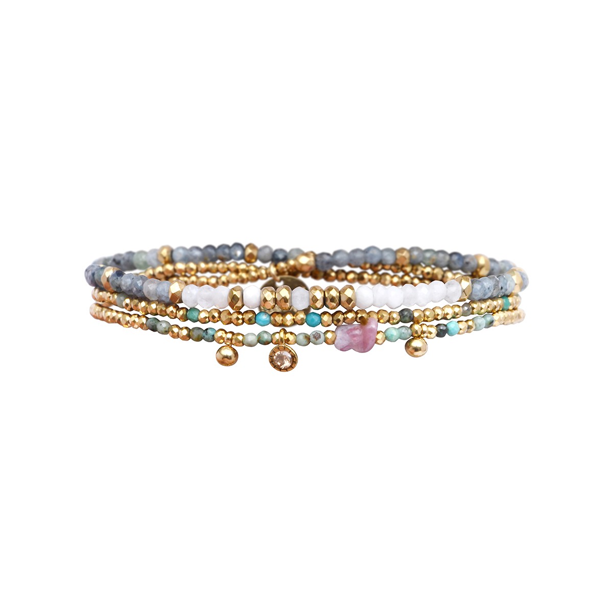 Bracelet élastique 3 tours Gabrielle tourmaline bleue