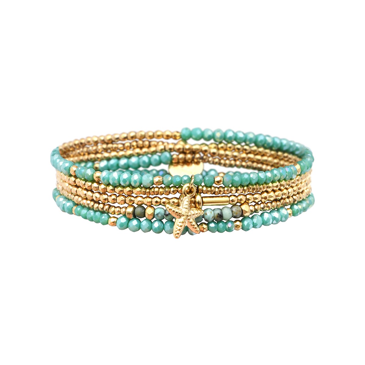 Bracelet élastique 5 tours Gaby mer des Caraïbes