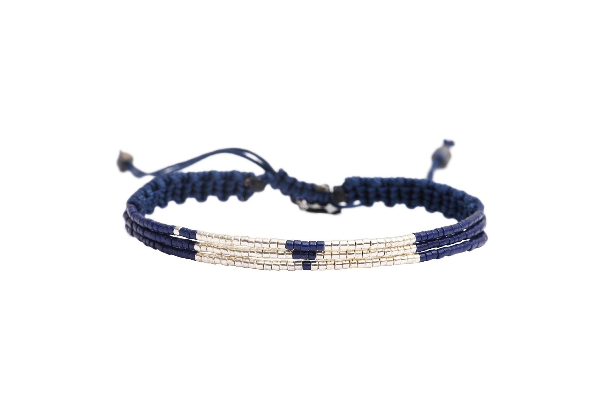 Le César est un bracelet macramé, composé de perles de miyuki du japon. Chaque perle est tisée une à une, à la main et à l'aiguille sur un macramé qui est un technique traditionnelle consistant à nouer plusiseurs fils entre eux. Fermoir lien coulissant et ajustable à tous les poignets. Les perles de miyuki sont réputées pour leur brillance et leur parfaite régularité. Elles sont gages de très haute qualité et de durabilité. Tous nos bijoux sont garantis. Composition : Perles de Miyuki bleues, argentées et macramé bleu