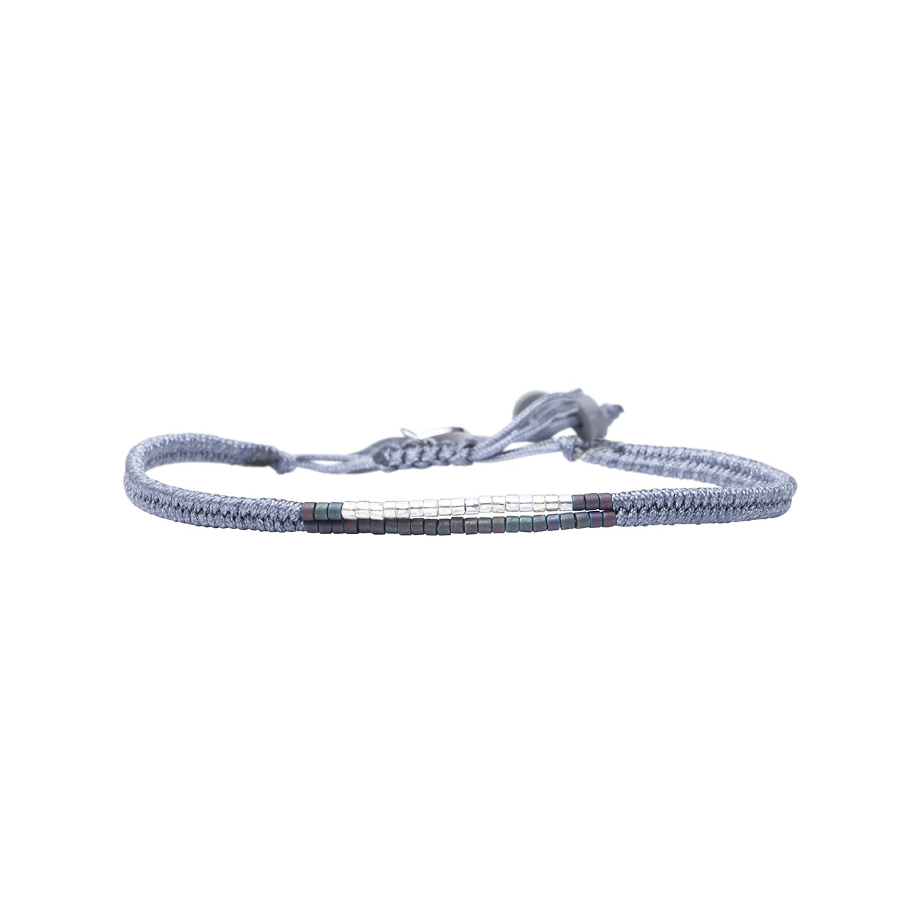 Composition : Perles de Miyuki argentées, grises et macramé gris.