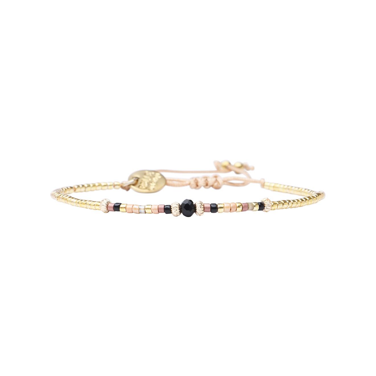 Composition : Perles de miyuki dorées - Noir satin profond - Peach Fuzz - Baume pour l'âme - Champagne