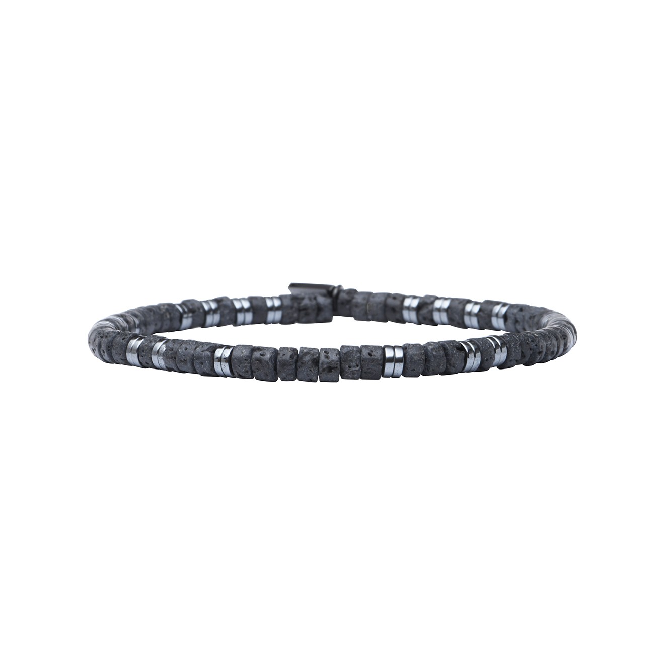 Le bracelet Leo, monté sur élastique, est composé de Pierre de lave et Hématite. Longueur : 16 à 20 cm