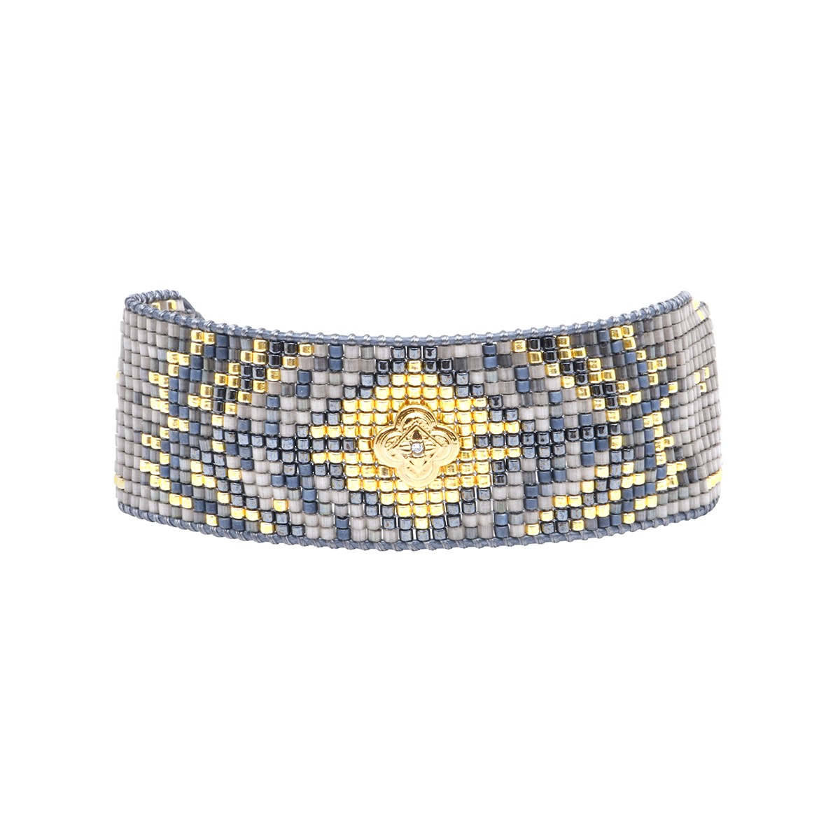 Composition : Perles de miyuki dorées - Champagne - Anthracite graphique - Nuit sans lune - Gris bleuté de Soho
