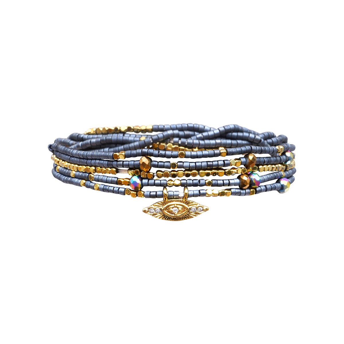 Le bracelet élastique Noha est composé de perles de miyuki du japon et de charms inoxydables.