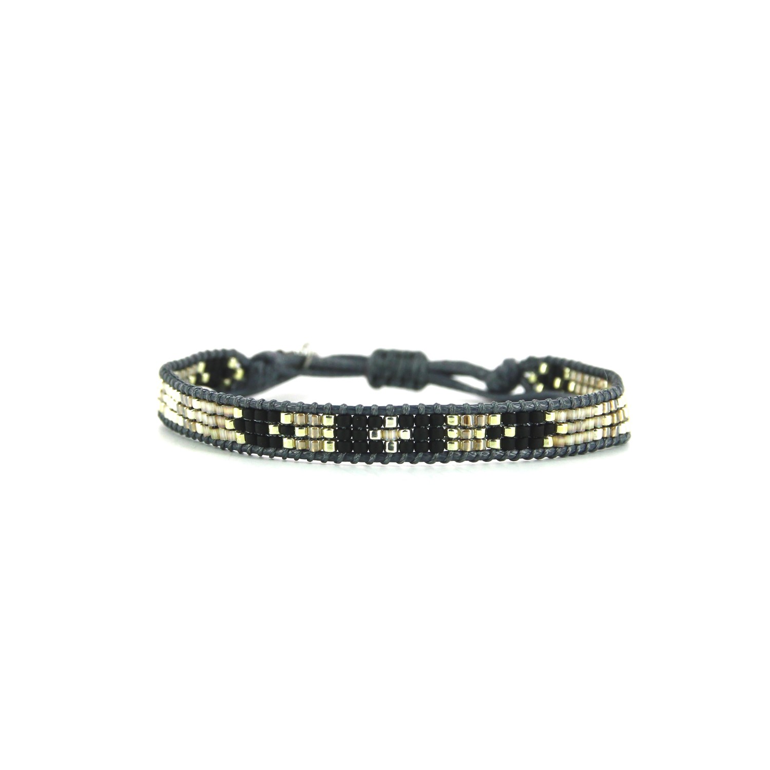 Composition : Perles de miyuki argentées - Noir d'ivoire mat - Gris Rembrandt - Champagne