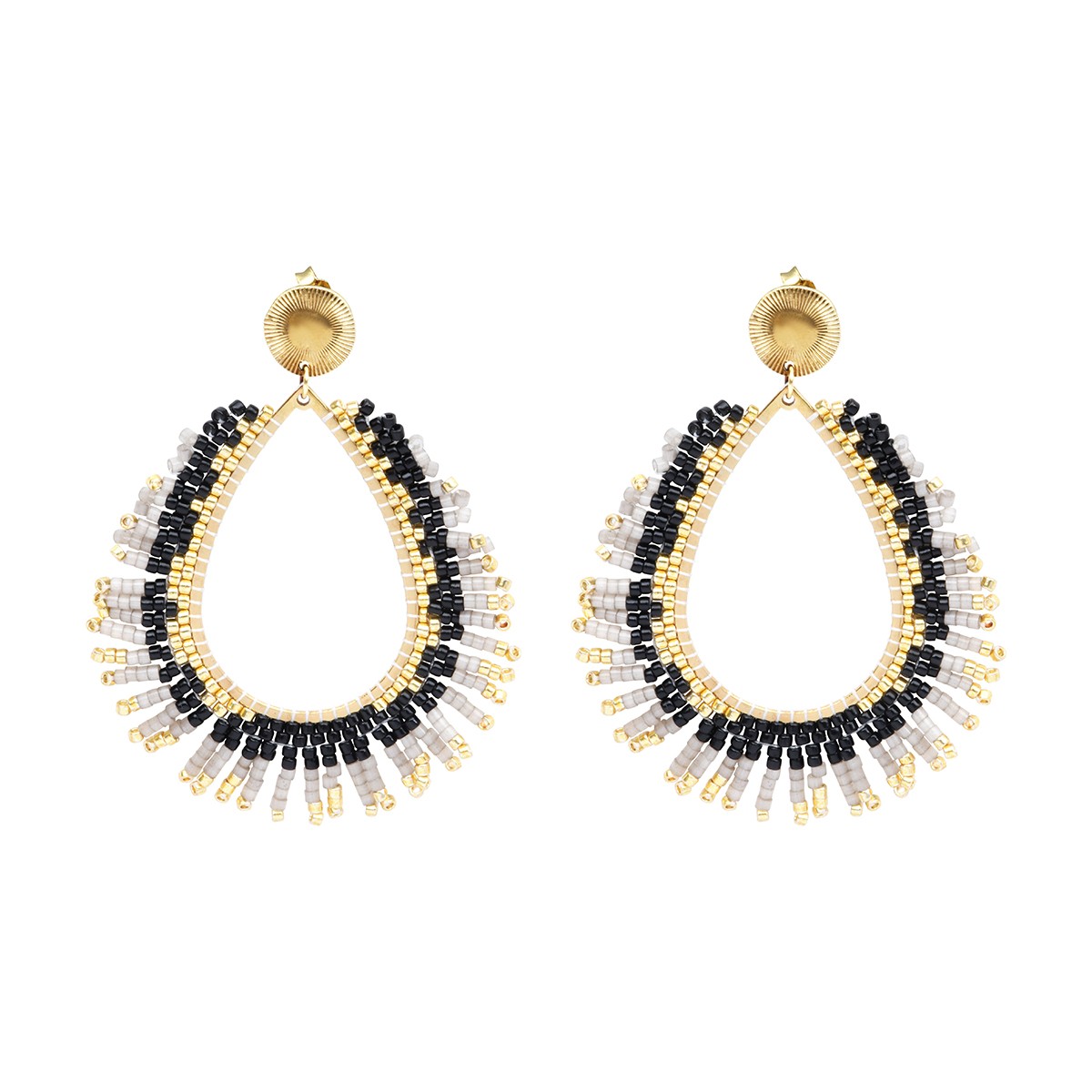 Composition : Perles de miyuki dorées - Noir satin profond - Champagne - Anthracite graphique