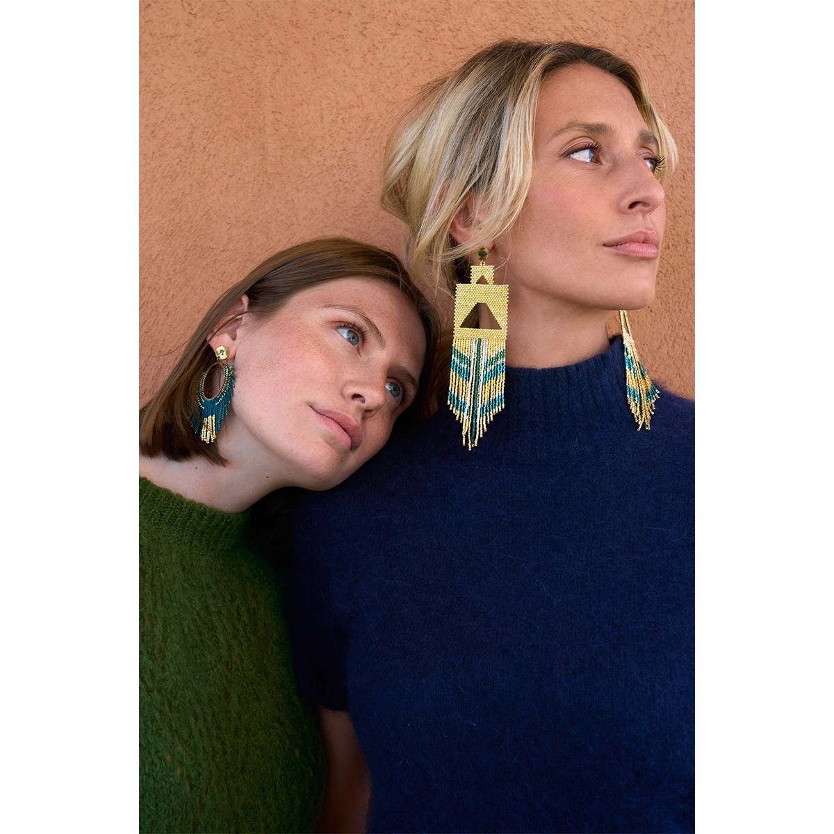 Les boucles d'oreilles Serena sont composées de perles de miyuki et laiton inoxydable. Tout comme vous, chaque bijou est unique : chaque perle est tisée une à une, à la main et à l'aiguille durant une à plusieurs heures, voire parfois des jours pour certaines pièces...